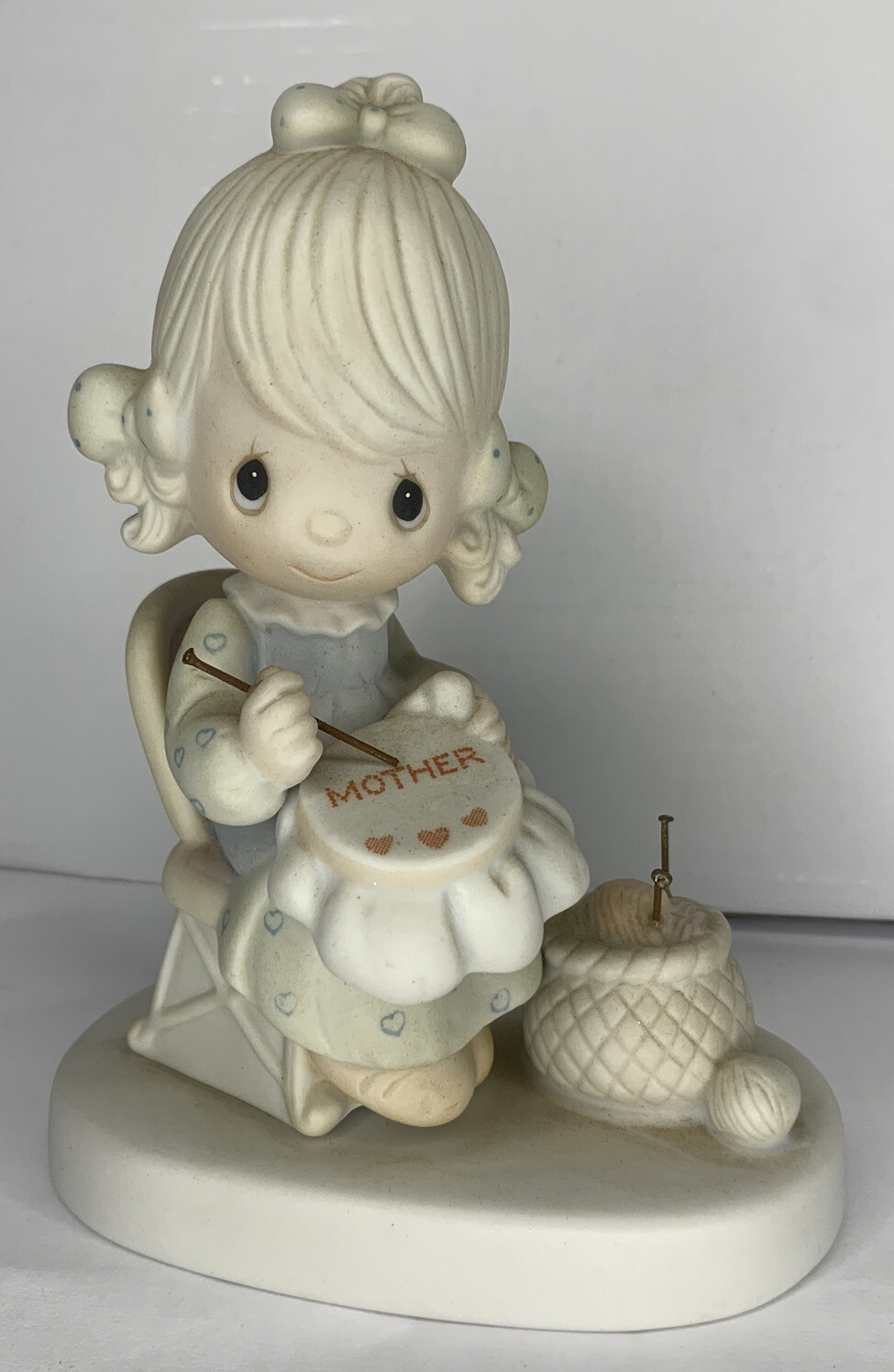 Web Precious Moments Vtg figurine Girl Mother Sew Dear Needlepoint e3106 1979 Sewing. Web Precious Moments Mother Sew Dear FOR SALE. Web Precious Moments E-3106 Mother Sew Dear.
