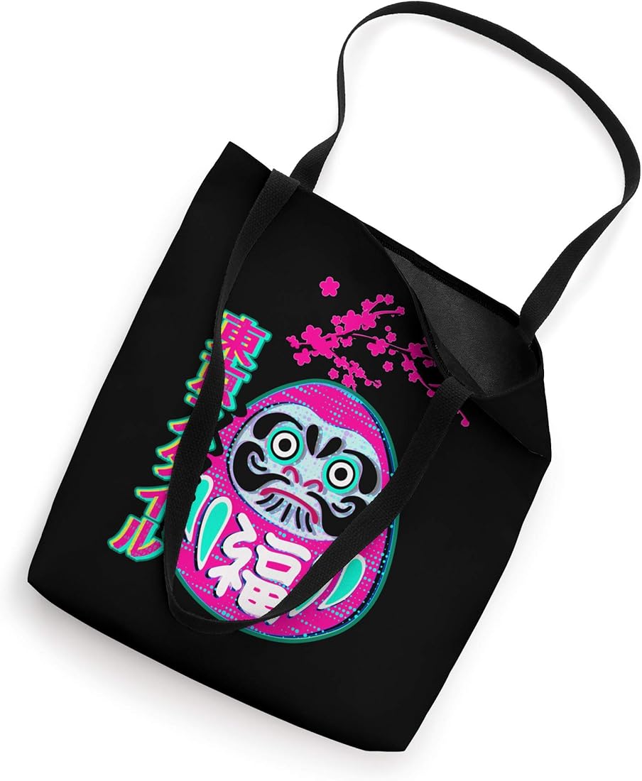 Amazon Com Japanese Daruma Doll Cherry Blossom Japan 90s Kanji Tokyo Tote Bag Clothing Shoes Jewelry